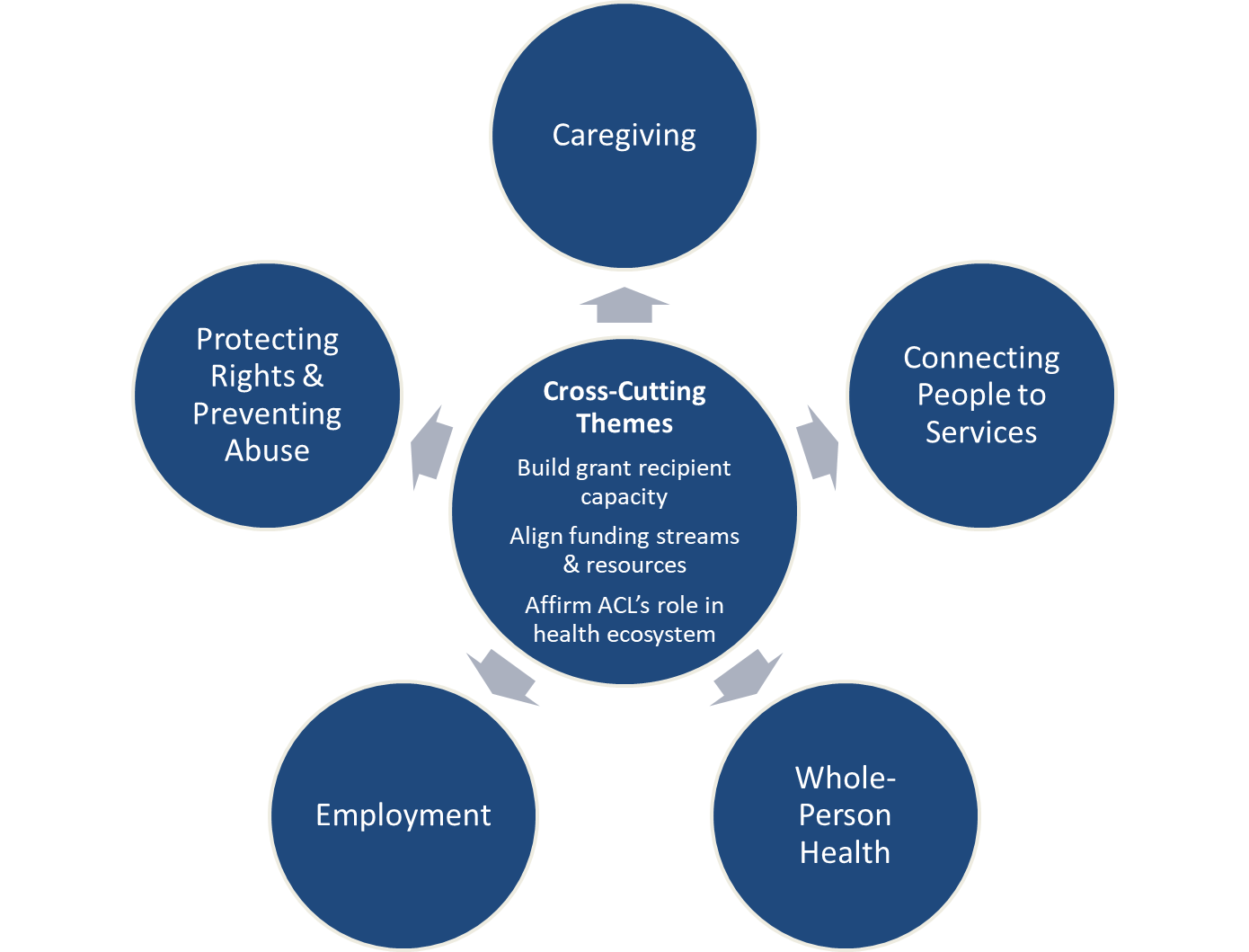 Maximize the independence, well-being, and health of older adults, people with disabilities across the lifespan, and their families and caregivers.